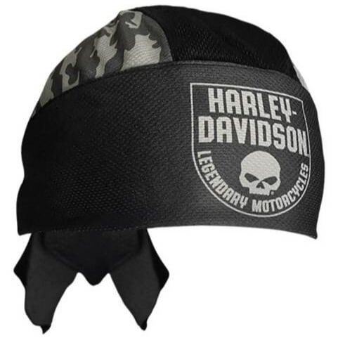غطاء الرأس المخفي للرجال من Harley-Davidson® - أسود ، 5029006703. ناعم للغاية وخفيف الوزن ، مصنوع من البوليستر بنسبة 100٪. رهيبة Willie G Skull مع رسم نص H-D® جريء في المقدمة. أسود مع لوحات جانبية مطبوعة كامو. مقاس واحد يناسب معظم ، إغلاق خلفي قابل للتعديل. غطاء رأس عالي الجودة ومريح للغاية ، مثالي لأي من عشاق Harley®.
