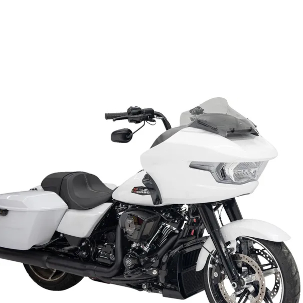 صُمم زجاج Klock Werks الأمامي لدراجات Road Glide بدقة متناهية ليكمل الخطوط الأنيقة لغطاء دراجتكم الأمامي الجديد، ويضيف لمسة رياضية تلفت الأنظار. لا يقتصر الأمر على المظهر فحسب، بل إن تصميم الزجاج الأمامي المبتكر "الوركي" و"الانقلابي" يضمن قيادة سلسة وثابتة من خلال التحكم في تدفق الهواء، وتقليل الاضطرابات، وزيادة قوة الدفع السفلية لقيادة واثقة.