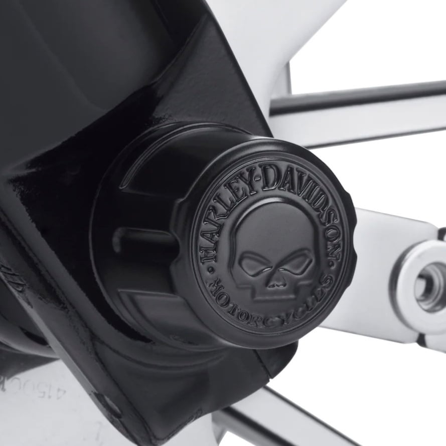 Fits ’02-’11 VRSC™ (except VRSCF and VRSCR), ’15-later XG, ’08-later XL (except '16-later XL1200X and XL1200XS), ’08-‘17 Dyna®, ’07-later Softail® (except Springer™, FLSTNSE, FLSB, FXCW, FXCWC, FXDRS, FXFB, FXFBS, FXLRS, FXSB, FXSBSE, FXSE, FXST-Aus, and FXSTD) and ’08-later Touring and Trike models. ’18-later FLDE, FLFB, FLFBS, FLHC, FLHCS, FLSL, FXBB, FXBR, FXBRS and FXLR models require separate purchase of Front Axle Adapter Kit P/N 43000090. ’20-later FXLRS, ’19-later FXDRS and ’18-later FLSB, FXFB and FXFBS models require separate purchase of Front Axle Adapter Kit P/N 43000159. d