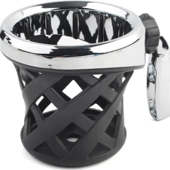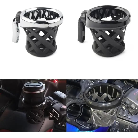 حامل أكواب عالمي لحامل أكواب Harley Handlerbar مع حامل سلة شبكية باللون الأسود
