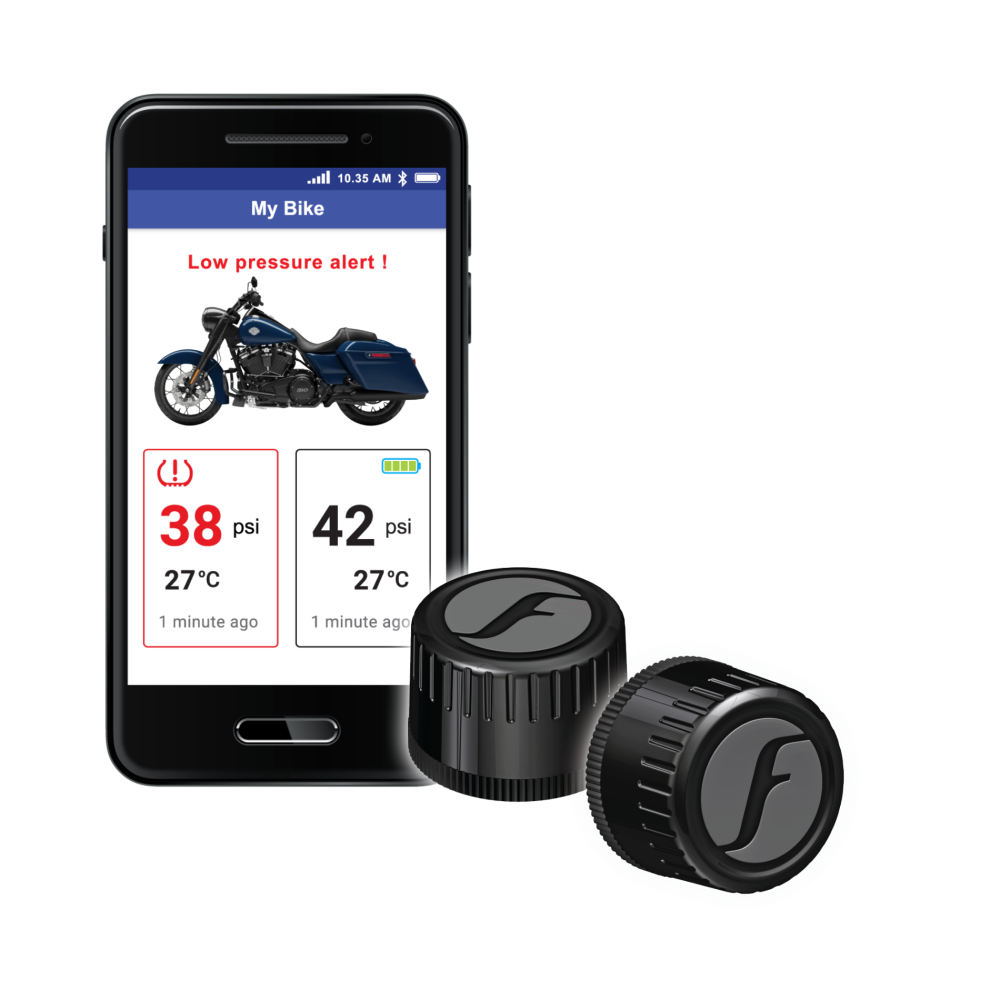 FOBO Bike 2 هو نظام ذكي لمراقبة ضغط الإطارات (TPMS) لكل سائق دراجة نارية (ذو عجلتين) يستخدم أحدث إصدار من Bluetooth 5.0 والذي يعمل مباشرة مع جهازك الذكي باستخدام Android 5.0 وiOS 12 أو الإصدارات الأحدث.