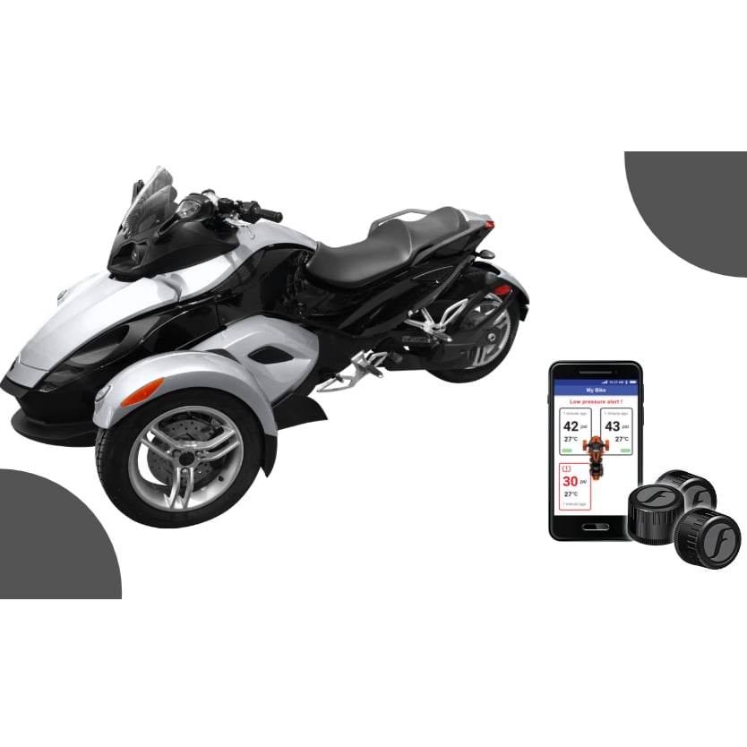The main function of FOBO Bike 2 for Trike is to monitor tire pressure in real time while riding or when in Bluetooth range. It detects slow or fast leak and alerts users to anomalies. It then transmits the readings to a smart phone where the user can browse. The user can set upper and lower thresholds of the air pressure. FOBO Bike 2 can send instant audio, haptic and text alerts on a smartphone/ smartwatch/ Bluetooth headset. It will monitor the pressure based on the thresholds with its smart algorithm and will provide three levels of alerts when the thresholds are breached.