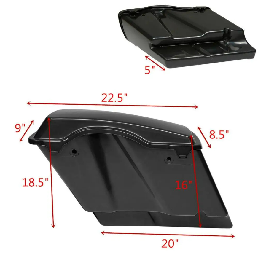 تم تمديد بمقدار 5 بوصات أطول من الاصلية لتغطية كاتم الصوت من الأمام إلى الخلف وإضفاء مظهر ممتد، الحجم كما هو موضح في الصورة. (قياسات الأبعاد الخارجية)