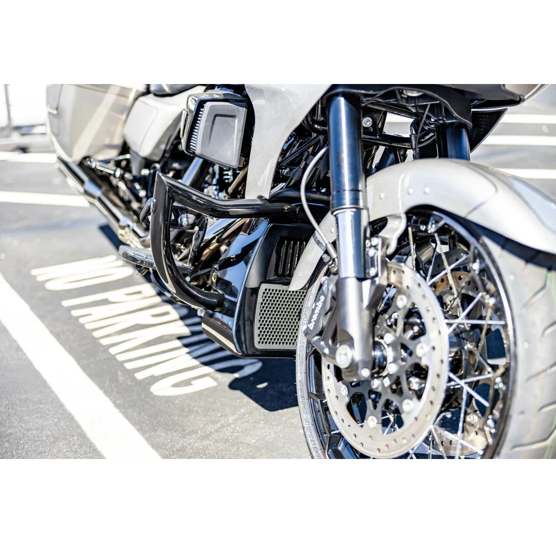 وصلت دعامة الحماية الجديدة Guardian. تناسب موديلات CVO Baggers من عام 2024 فصاعدًا و2023. تتوافق دعامة Guardian مع المصد الأمامي، ولكنها لا تتوافق مع الأجزاء السفلية من الهيكل. مصنوعة من الفولاذ المدلفن على البارد بقطر 1.5 بوصة وعرض 31.25 بوصة. صممنا دعامة Guardian أقصر من دعامة Shield لتسهيل وضع حذائك عليها أثناء الرحلات الطويلة. تم تعديل الجزء العلوي من أنبوب Guardian لتوفير مساحة كافية للرفرف الأمامي الأصلي. أضفنا خطاف R وS المميز لضمان تميزك.