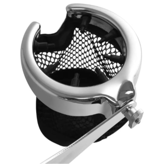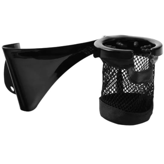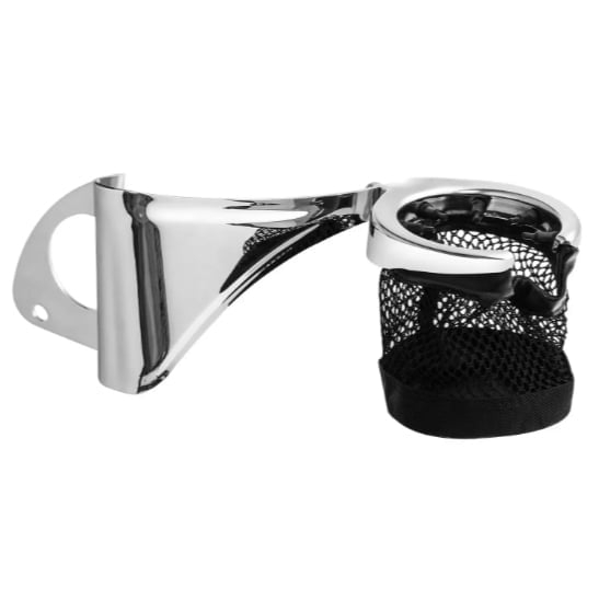 【مادة ممتازة】-- حاملات مشروبات الركاب مصنوعة من حديد عالي الجودة، وهو متين ومصنوع ليدوم طويلاً، جزء الواجهة بين الجيب الشبكي وحافة تصميم حاملات الأكواب، فهو يناسب بعمق جمال وذوق راكبي الدراجات النارية. .