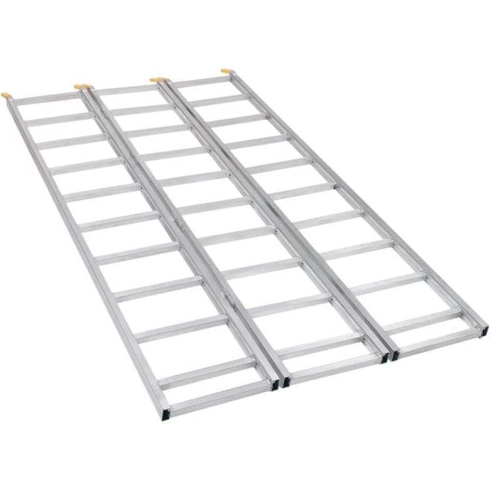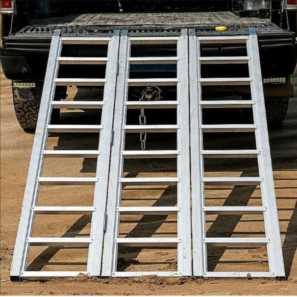 • سعة تحميل فائقة: تم تصميم هذا المنحدر المصنوع من الألومنيوم ثلاثي الطي لدعم ما يصل إلى 1500 رطل، مما يجعله حلاً مثاليًا لتطبيقات الخدمة الشاقة، مثل تحميل عربات الثلوج، ومقطورات العشب، ومركبات ATV، والدراجات النارية.