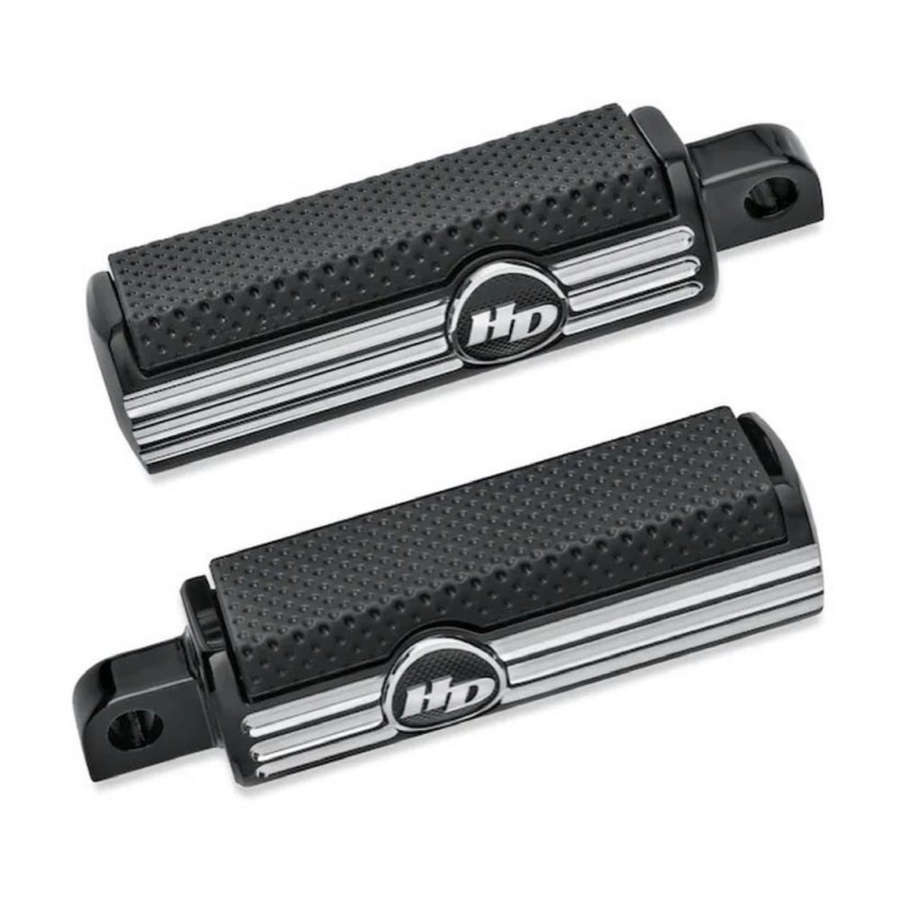 • تتميز دعامات القدم المصنوعة من الألومنيوم بنمط من الأخاديد الجانبية العميقة وشعار H-D® منمق للحصول على مظهر أنيق وعصري