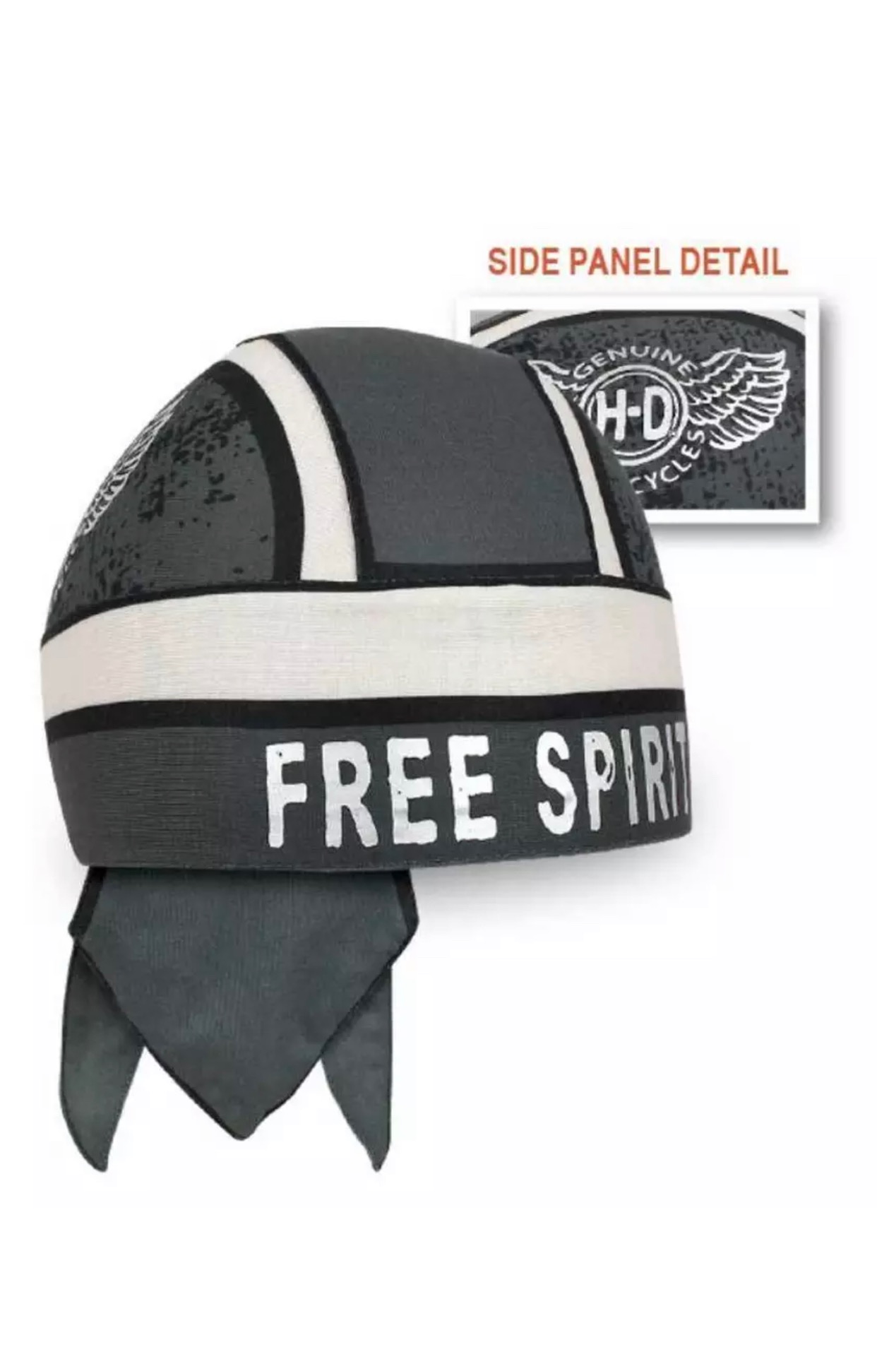 هارلي ديفيدسون . مصنوع من 100٪ بوليستر ناعم ومطاطي. تتميز بخط 'Free Spirit' المعدني الفضي الجميل على الجانب الأمامي مع رسومات مجنحة H-D معدنية فضية مطبوعة على الألواح الجانبية. مقاس واحد يناسب أكثر. ملحق مثالي لأي زي راكب الدراجة النارية!