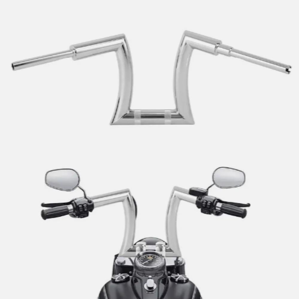 رايزر 1.25 بوصة، ويبلغ القطر 7/8 بوصة عند جزء التثبيت للتحكم في شريط المقبض، مصنوع من أنبوبين مقاس 2 بوصة، وارتفاع 12 بوصة؛ العرض من الأعلى: 33 بوصة، العرض من الداخل: 5 1/2 بوصة