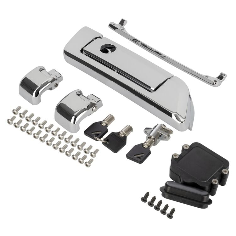 تأتي هذه المفصلات ومجموعة المزلاج من طراز HogWorkz OE مع كل ما تحتاجه لإكمال تركيب الأجهزة بالكامل على مجموعة جولات نمط Rushmore الخاصة بك. تتميز بلمسة نهائية جميلة من الكروم الثلاثي والتي من المؤكد أنها ستجذب الانتباه. تعمل هذه المجموعة مع جميع مجموعات H-D TourPak من طراز Rushmore بالإضافة إلى حزم HogWorkz Tour.