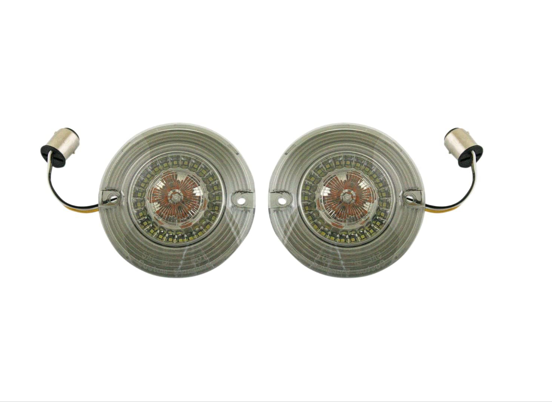 1986-2013 Harley-Davidson® Electra Glide Classic (FLHTC), Electra Glide Standard (FLHT), Ultra Classic (FLHTCU), Ultra Limited (FLHTK), 1986-2022 Road King (FLHR), Road King Classic (FLHRC), 1986-2017 Heritage Classic (FLSTC) and 1999-2003 Road Glide (FLTR) models with 1157 front dual contact turn signal bulb bases.
