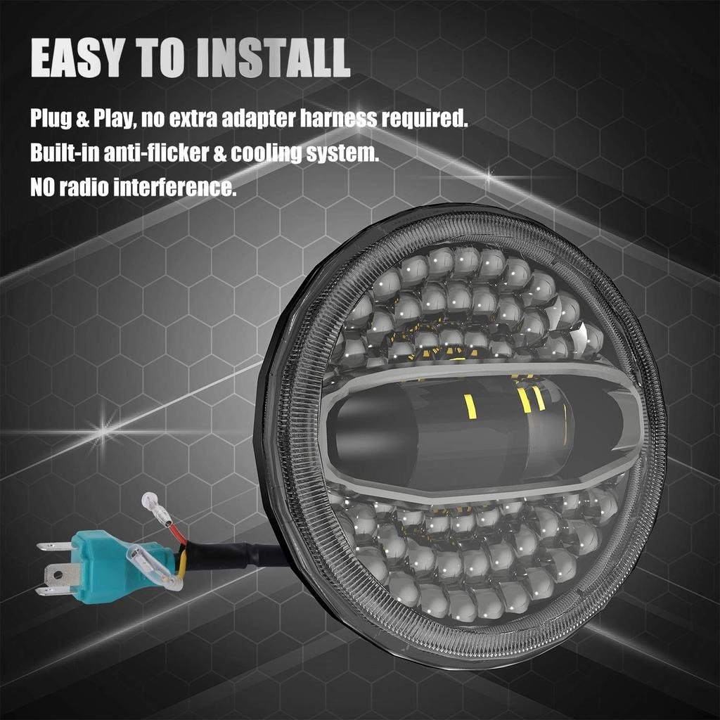 • صممت المصابيح الأمامية LED مقاس 7 بوصات خصيصًا لاستخدام إلكترونيات مضادة للتداخل والتبريد السلبي (بدون همهمة)