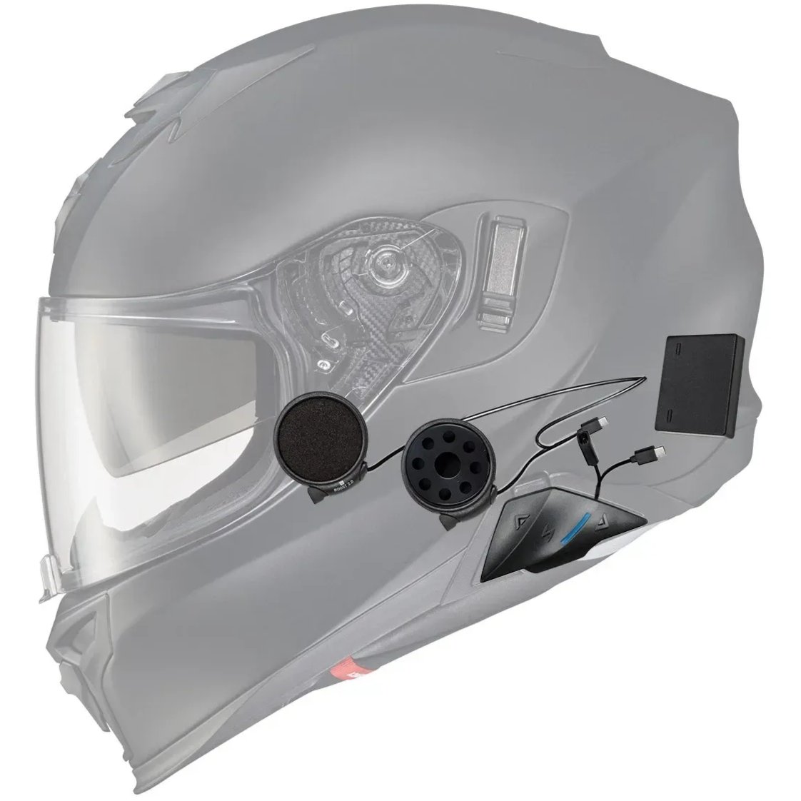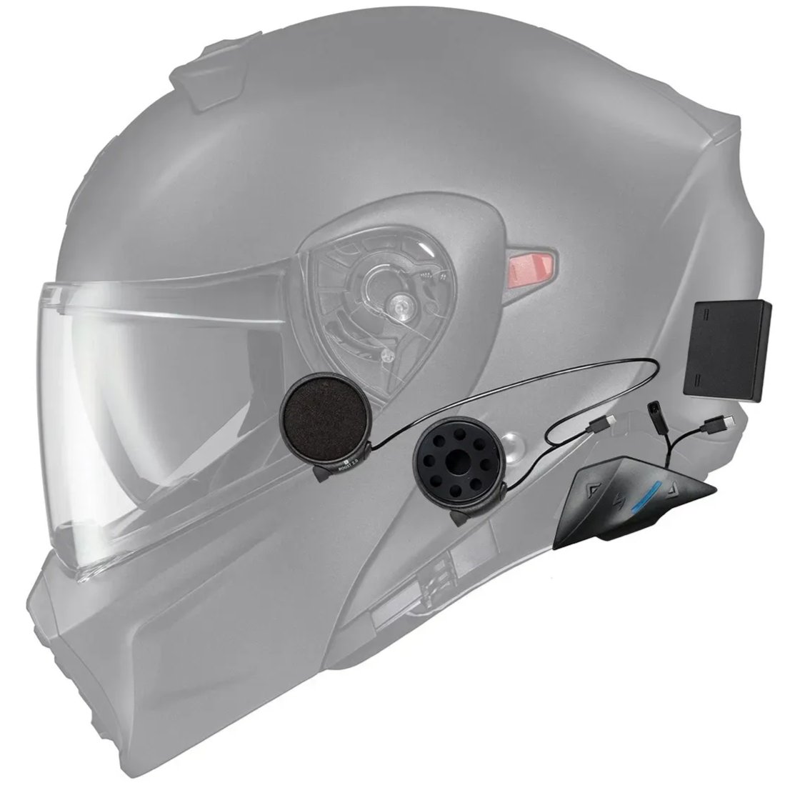 نظام اتصال داخلي DynaMESH لأربعة ركاب: شبكة MESH ذاتية الإصلاح تُحسّن قوة الإشارة وتُبقيك على اتصال. نطاق الاتصال الداخلي: يصل إلى 0.8 كيلومتر (0.5 ميل) للشخص الواحد. إقران عالمي للأجهزة: إقران أجهزة متعددة في وقت واحد، مثل الهواتف الذكية، ونظام تحديد المواقع العالمي (GPS)، والأجهزة اللوحية، وأنظمة معلومات OEM، وأجهزة العلامات التجارية الأخرى. متوافق مع UCLEAR®: نظام اتصال داخلي متوافق بسلاسة مع أنظمة الاتصالات من UCLEAR Digital. صوت قوي: مكبرات صوت عالية الجودة ومعادل رسومي (مشغلات 40 مم). إلغاء ضوضاء DSP قابل للتعديل عبر ميكروفونين متقدمين لتشكيل الشعاع (ABF). قابل للتعديل من قبل المستخدم.