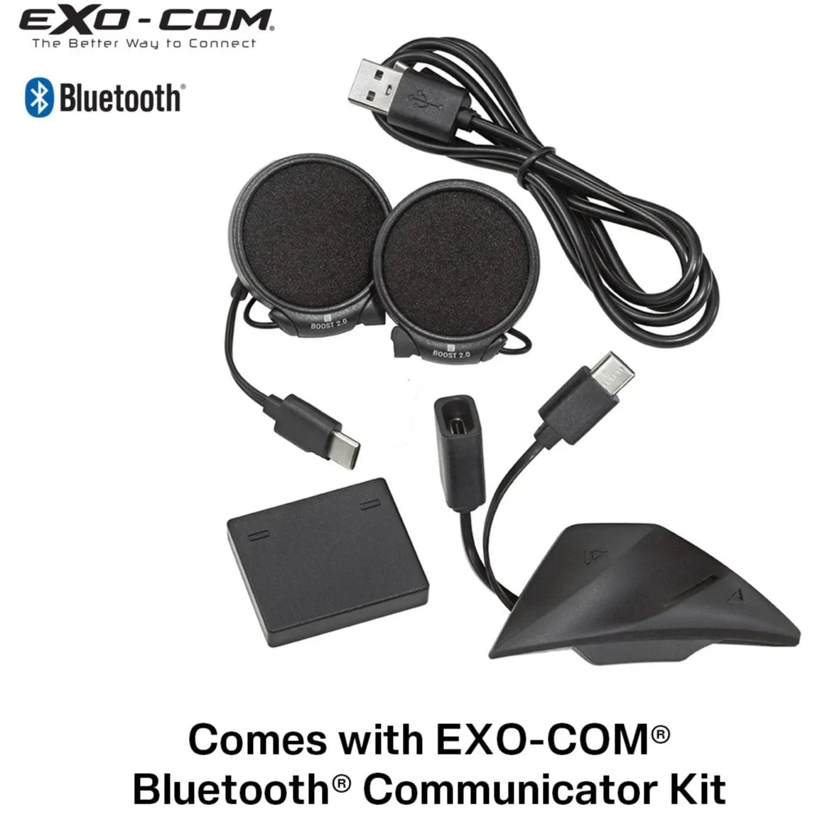 يتضمن جهاز EXO-COM®: يتكامل مع طقم اتصال EXO-COM® Bluetooth® (مكبرات الصوت والميكروفونات مثبتة، والبطارية ووحدة الاتصال متضمنة).
