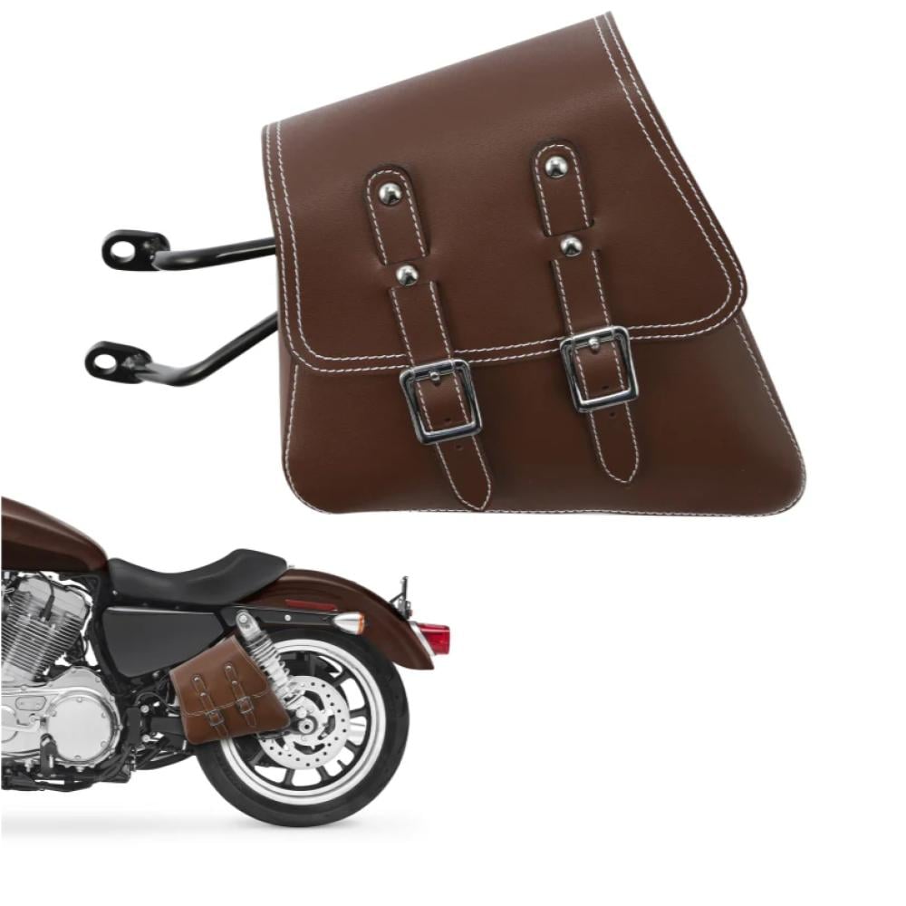 Designed to fill in the void between the battery cover and the shock on the left side of the motorcycle. Easy-install saddlebags for 2007-2023 Sportster. Made of high-quality PU leather, waterproof and durable. Two iron buckles for safe storage. Provides spacious space for your riding. Powerful supply for either short or long journeys.