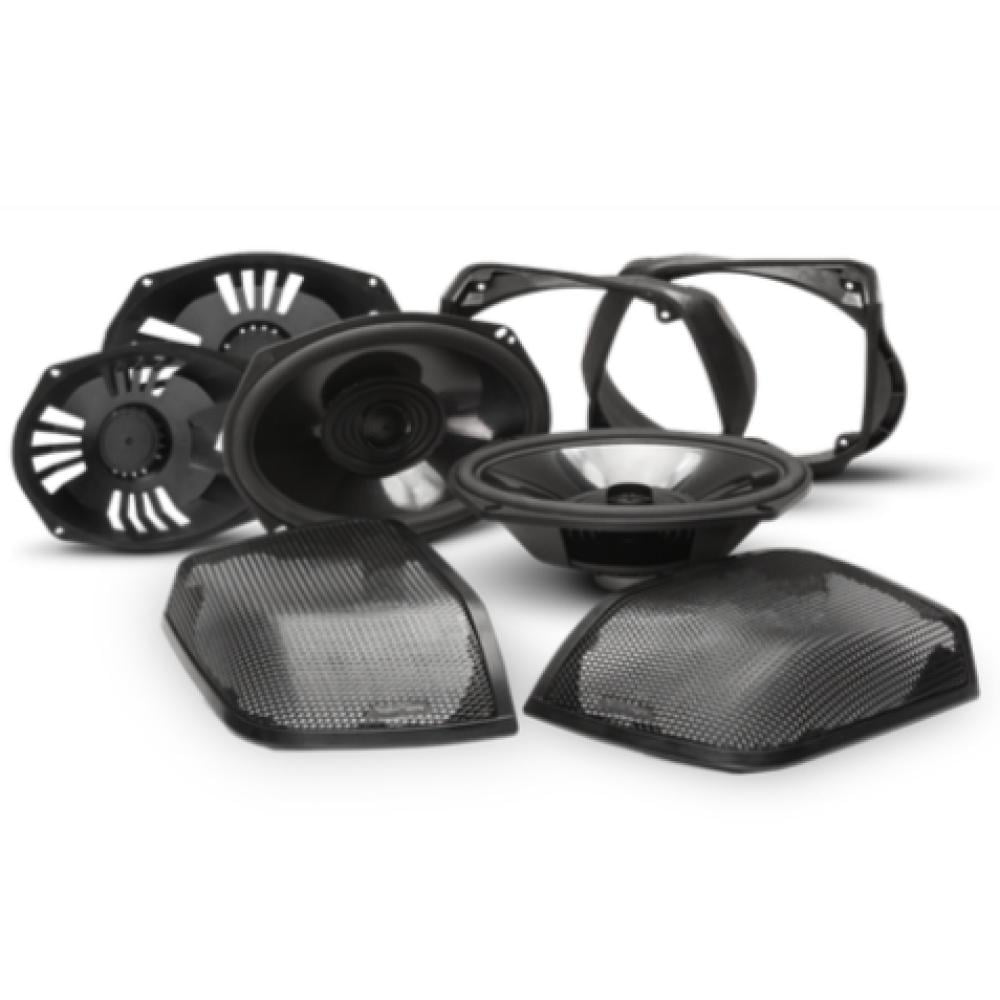 The HD14RK-STAGE2 is a high-performance audio kit for select 2014 and newer Road King motorcycles designed to deliver an exceptional sound experience while retaining as much interior bag space as possible. Kit includes a 6”x9” saddle bag speaker retrofit kit, 400-watt amplifier, Bluetooth® receiver, and a plug-n-play wiring harness. Prewired expansion input for use with lowers (see specifications table for required connector.) NOTE: The handlebar remote control is an optional accessory available under the Accessories tab.