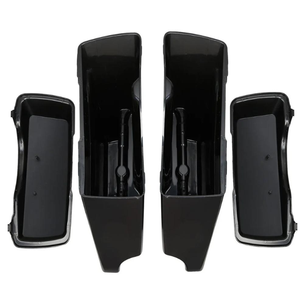 - 100% Brand New;Saddlebags are stretched 5" longer than stock to cover the muffler front to back and give that stretched look