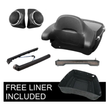- Package Include: 1 x King Size Tour Trunk with Backrest; 2x Speaker Pods; 2x metal Black mesh screens; 2x stylish chrome finish screen retaining rings; 2x speakers 1 Tourpak taillight red 1 harness 1 interiore iron plate .